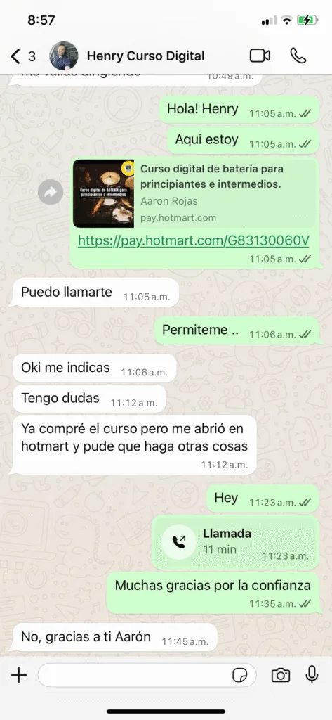 Empecé sin saber absolutamente nada de batería y en pocas semanas ya estaba tocando ritmos, aprendiendo canciones y entendiendo cómo coordinar manos y pies. Las lecciones están muy bien explicadas y el avance es súper claro. Aarón es un excelente maestro, se nota su experiencia y pasión por enseñar. Lo mejor es que pude avanzar a mi propio ritmo y siempre tuve apoyo cuando tuve dudas. ¡Totalmente recomendado!”